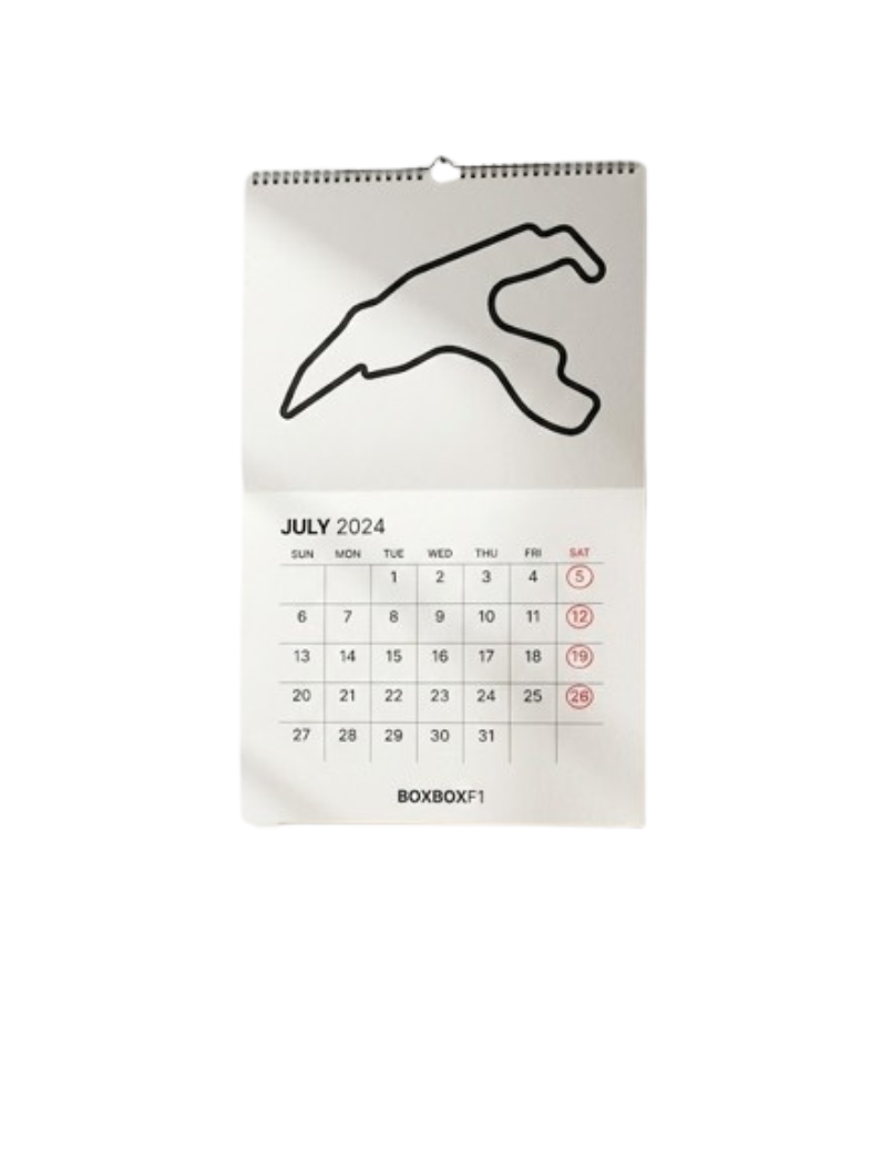 Fini les calendriers surchargés de photos, cette édition ‘BoxBox Originals’ mise sur l’élégance du tracé. Chaque mois révèle la silhouette d’un circuit légendaire traité comme une œuvre d’art graphique.