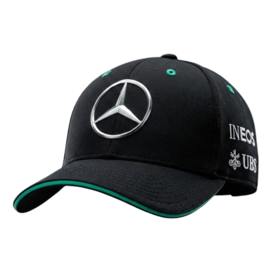 Cette casquette incarne la précision et le luxe de la marque à l’Étoile. C’est la version authentique portée par les ingénieurs et les pilotes dans les stands.