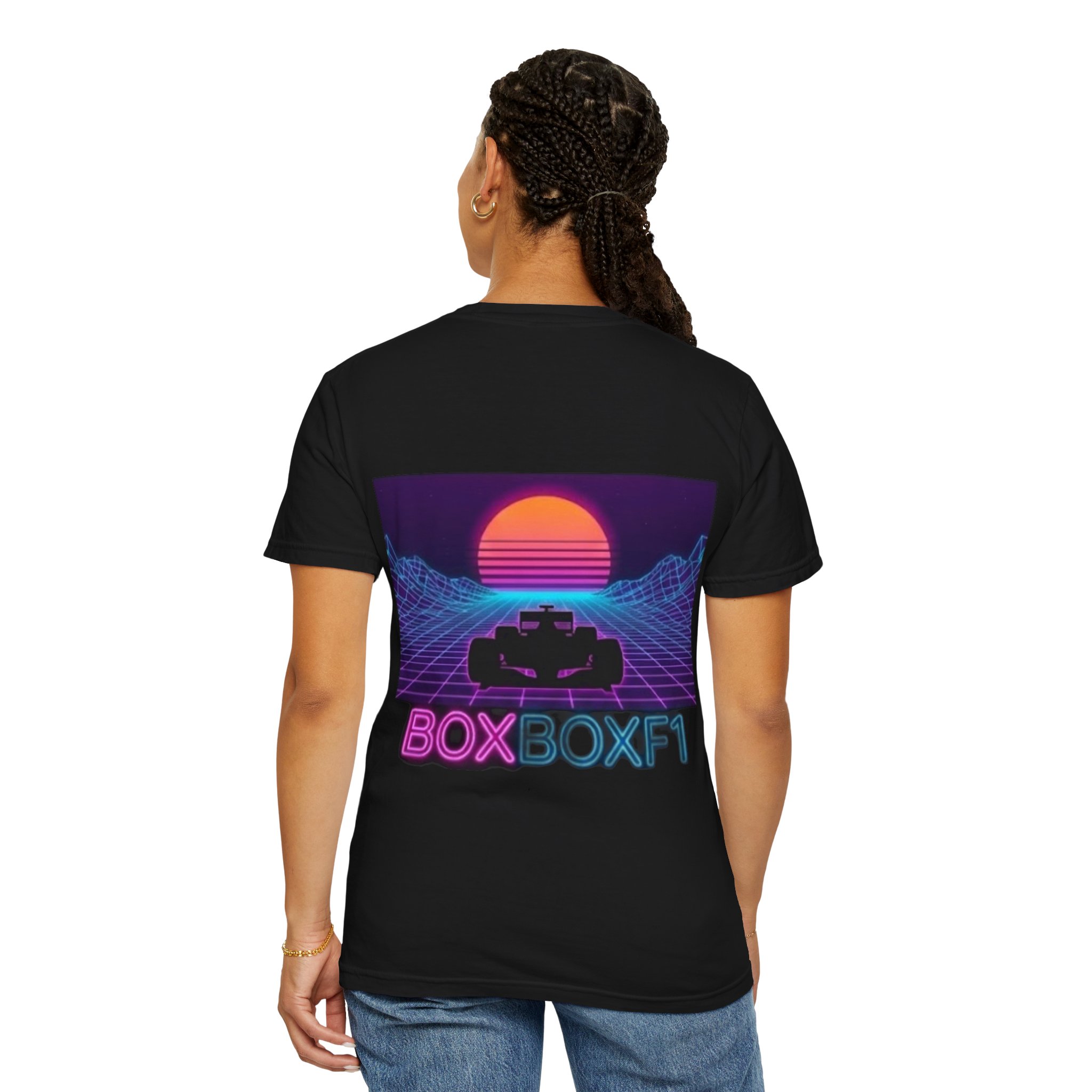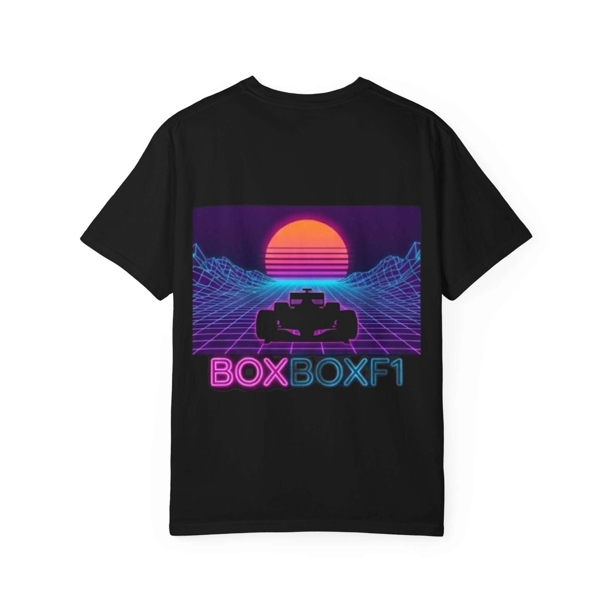 A lived-in, vintage-inspired tee that channels the roar of open circuits and sun-bleached paddocks. The heavyweight, garment-dyed cotton feels broken-in from the first wear — like a race poster you found folded in a glovebox. Bold retro type and a classic single-seater illustration sit on the chest, evoking pit-lane adrenaline and long drives at dusk. Wear it to weekend meetups, track days, or when you want your outfit to tell a story about speed, craftsmanship, and old-school race culture.