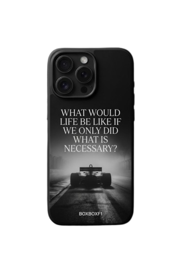 Une réflexion sur le dépassement de soi. Cette coque au design noir et blanc intemporel met en scène une monoplace vintage dans la brume, surmontée d’une citation inspirante. L’élégance pure pour les passionnés d’histoire de la F1.