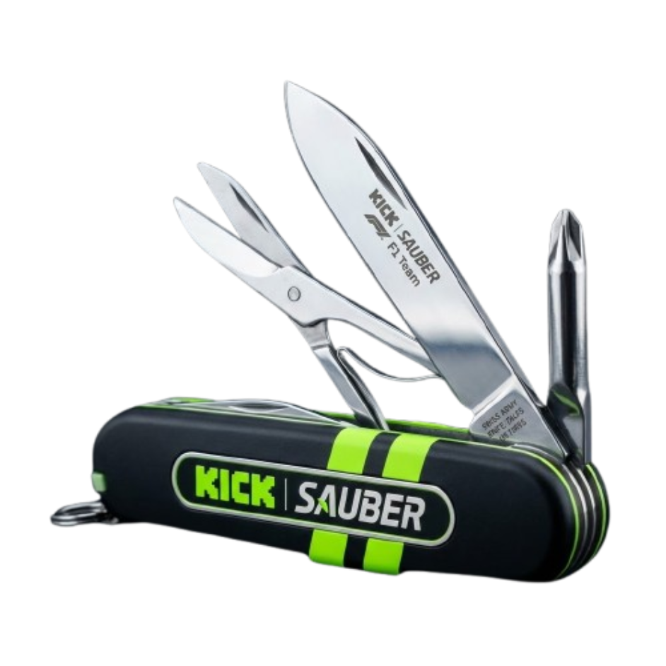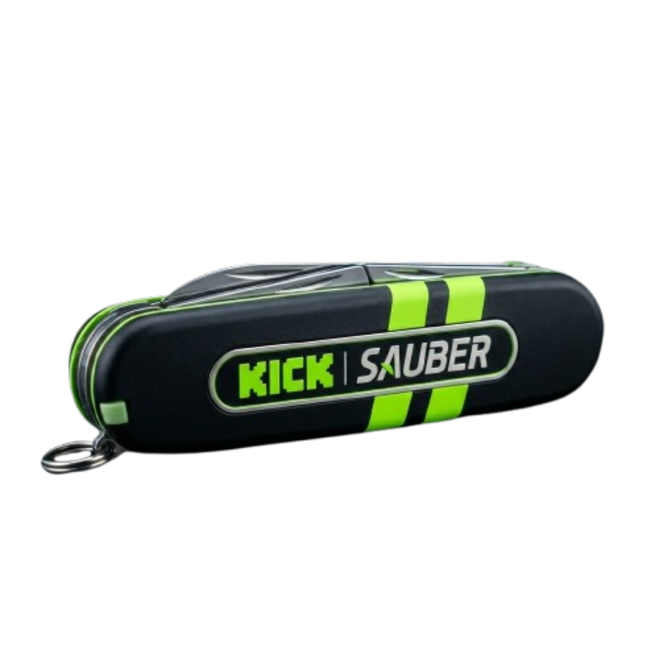 ✒️ Gravure Laser : Logo ‘KICK | SAUBER F1 Team’ sur la grande lame.