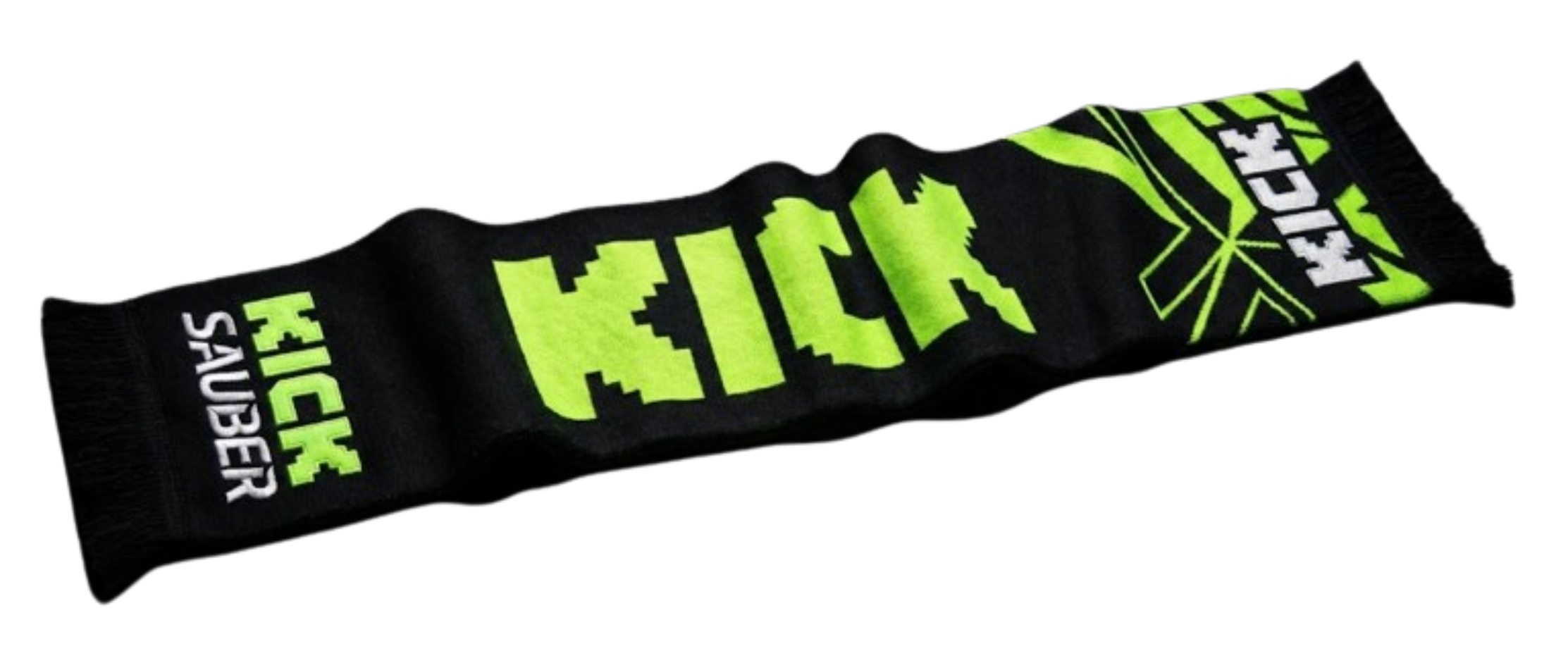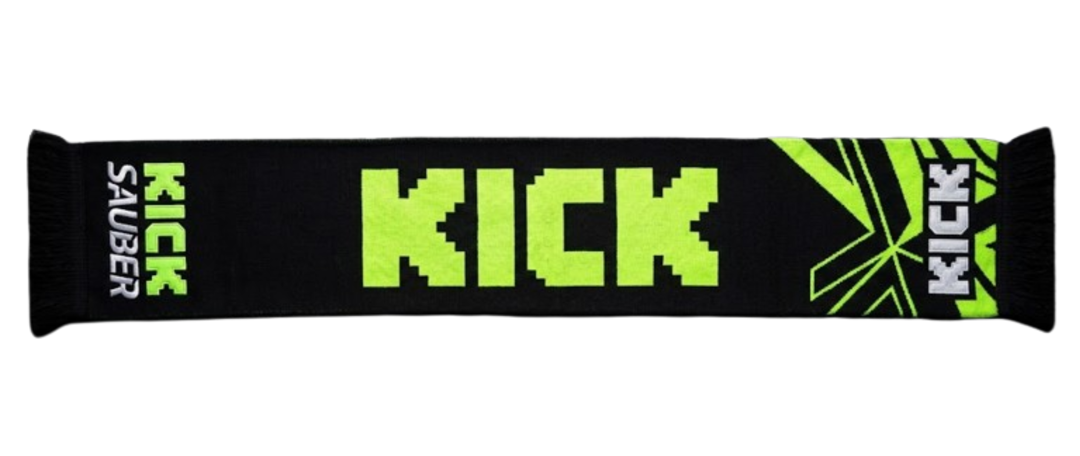 🏎️ Branding Complet : Logo ‘KICK SAUBER’ brodé à une extrémité et graphismes géométriques dynamiques à l’autre.