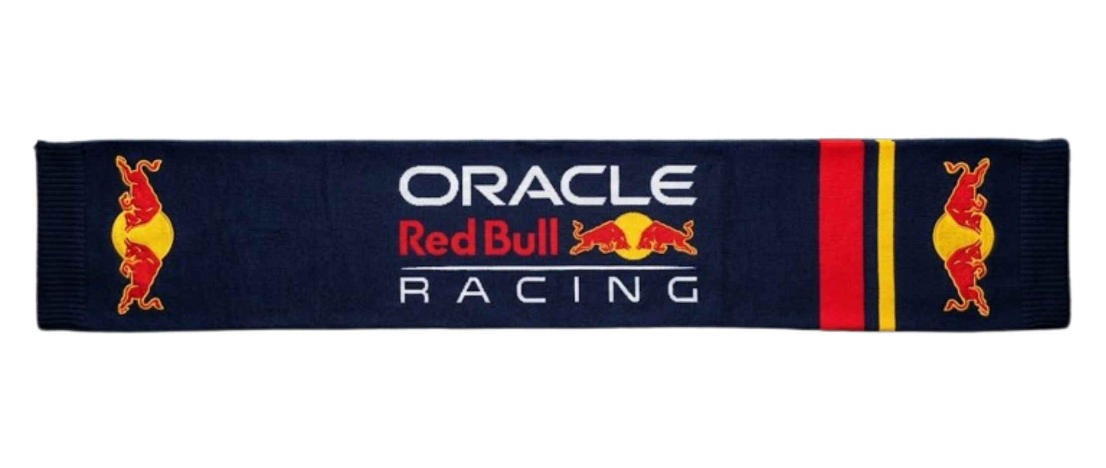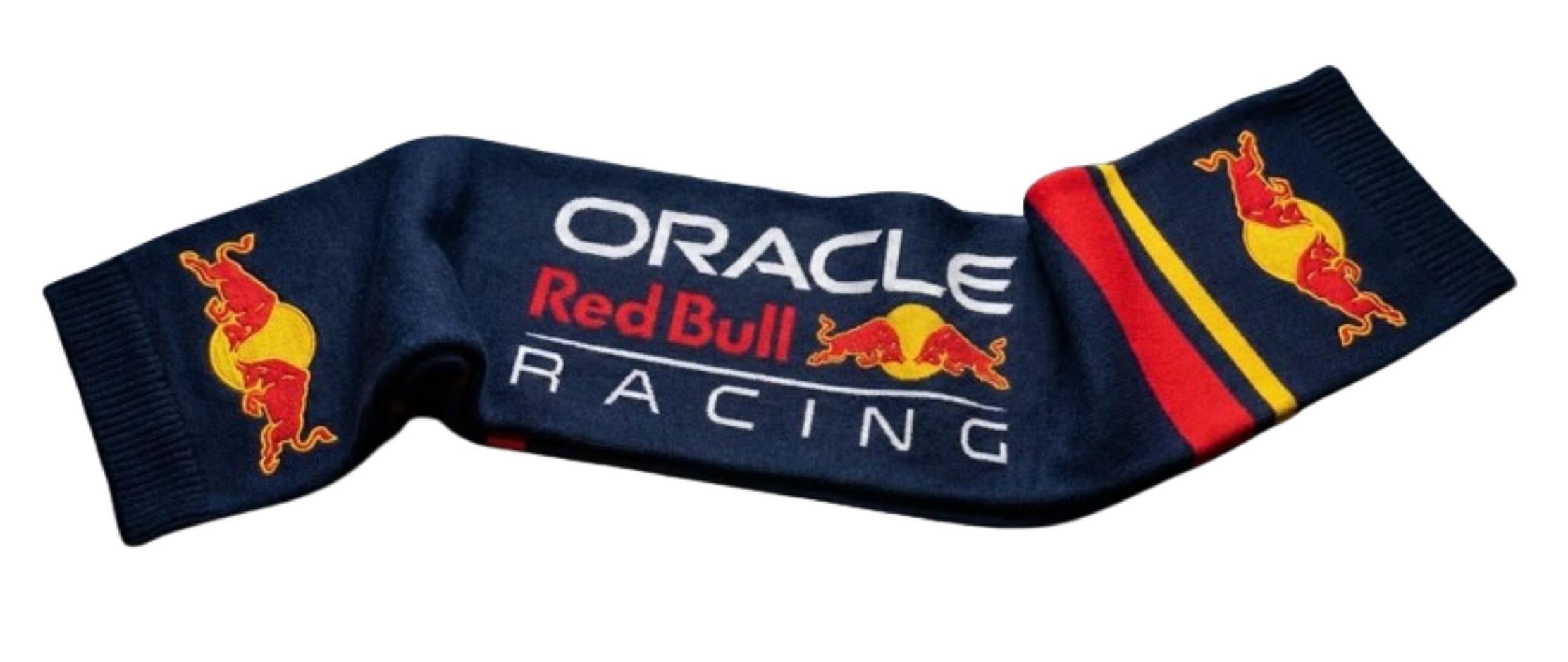 🏎️ Détails Graphiques : Une bande rouge épaisse et un liseré jaune traversent l’écharpe près des bords, rappelant la livrée de la voiture RB20.